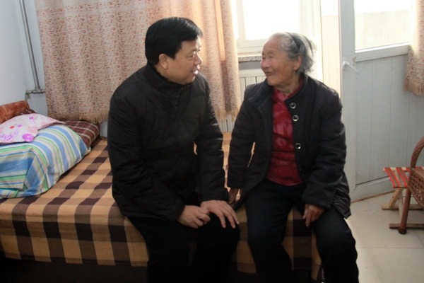 古怀璞厅长到晋州市中心敬老院考察慰问,深入宿舍与老人亲切交谈,询问老人生活情况