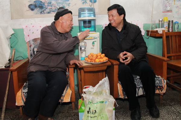 看望慰问75岁老党员雷造银,与老人亲切交谈