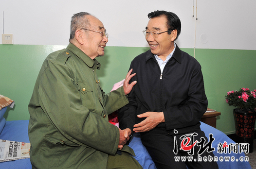 9月22日,省委书记张庆黎在涉县敬老院亲切慰问88岁的老红军申光明。河北日报记者郭昭摄